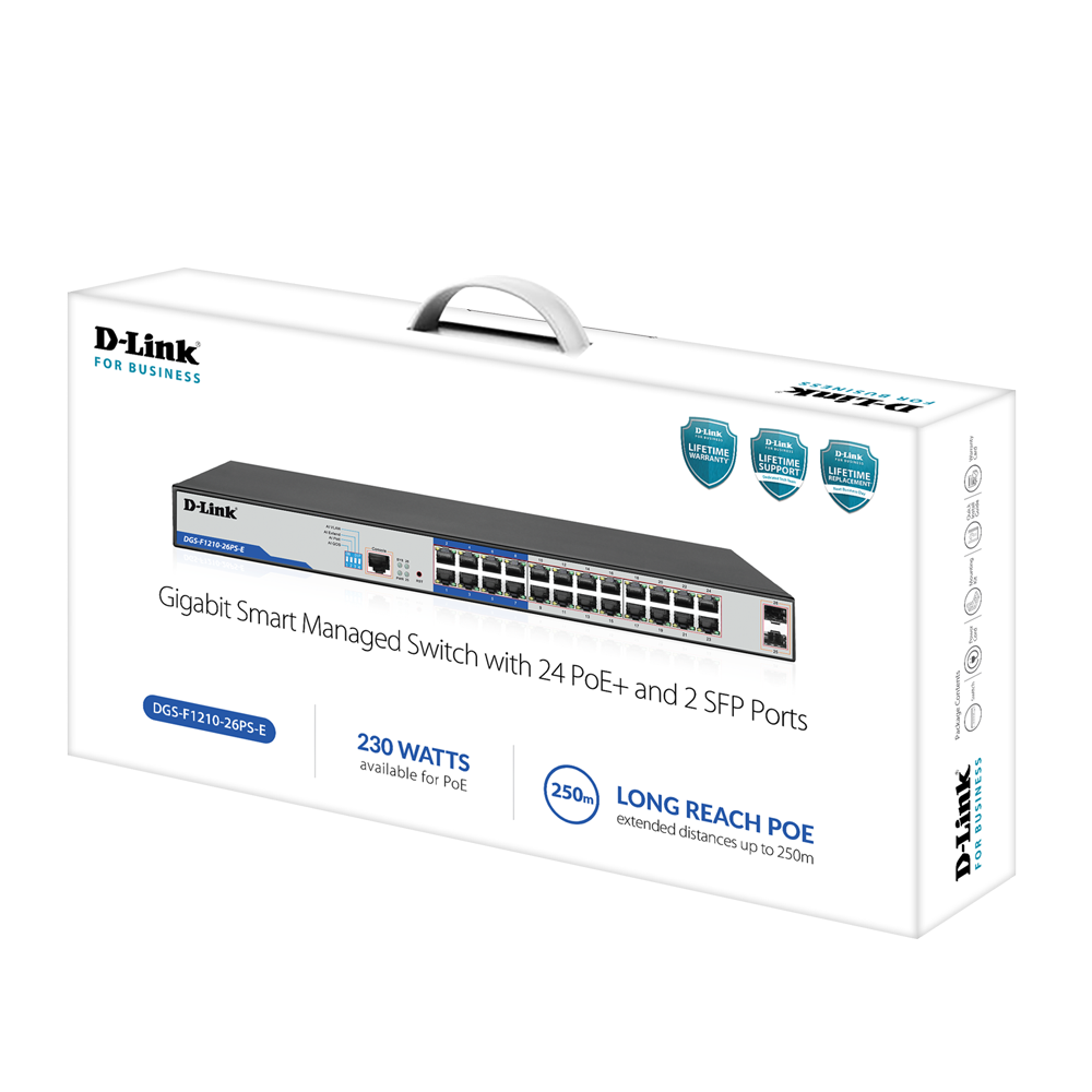 - پشتیبانی از PoE: DGS-F1210-26-PS با قابلیت PoE، توانایی ارائه حداکثر 370 وات به دستگاههای متصل را دارد. این ویژگی به شما این امکان را میدهد که دستگاههای PoE را بدون نیاز به منابع برق جداگانه نصب کنید.